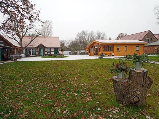 Ihr Feriendomizille befindet sich auf dem liebevoll restaurierten Bauernhof mit großräumigem Grundstück und weitem Blick in die ländliche Umgebung des Oderbruchs. Das im Blockhausstil erbaute Haus bietet Ihnen auf 54 Quadratmetern einen offenen Wohnküchenbereich mit kompletter Ausstattung inklusive Spülmaschine, 2 Schlafzimmer mit max. 5 Schlafmöglichkeiten, ein Bad mit Dusche sowie eine rundumverglaste Veranda. Im Wirtschaftsgebäude stehen Ihnen Waschmaschine und Trockner zu Verfügung. Verschiedene Plätze zum Verweilen und Ruhen finden Sie in unserem weitläufigen Gartenbereich. Wer eine Auszeit sucht oder gerne Fahrrad fährt, ist hier genau richtig.